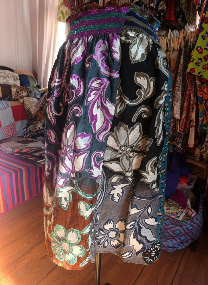 Metallic Brocade Skirt – Botanical & Animal Print Fusion | One of a Kind