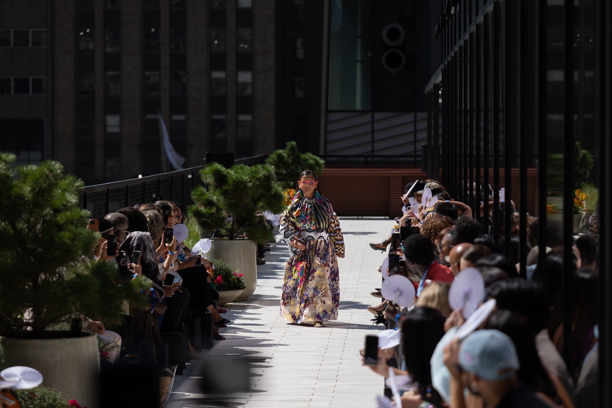 Presented at the New York Fashion Week 2025, this one-of-a-kind statement skirt embodies sustainable luxury, global storytelling, and timeless sophistication — a collectible creation for lovers of wearable art and bold design.