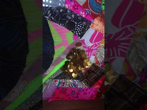 Collage made from cultural fabric remnants on canvas