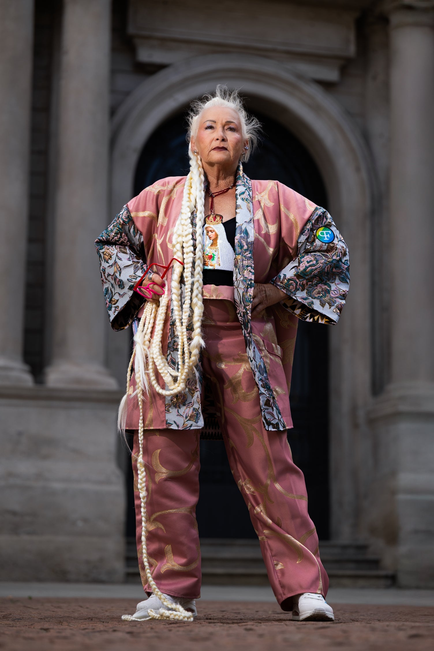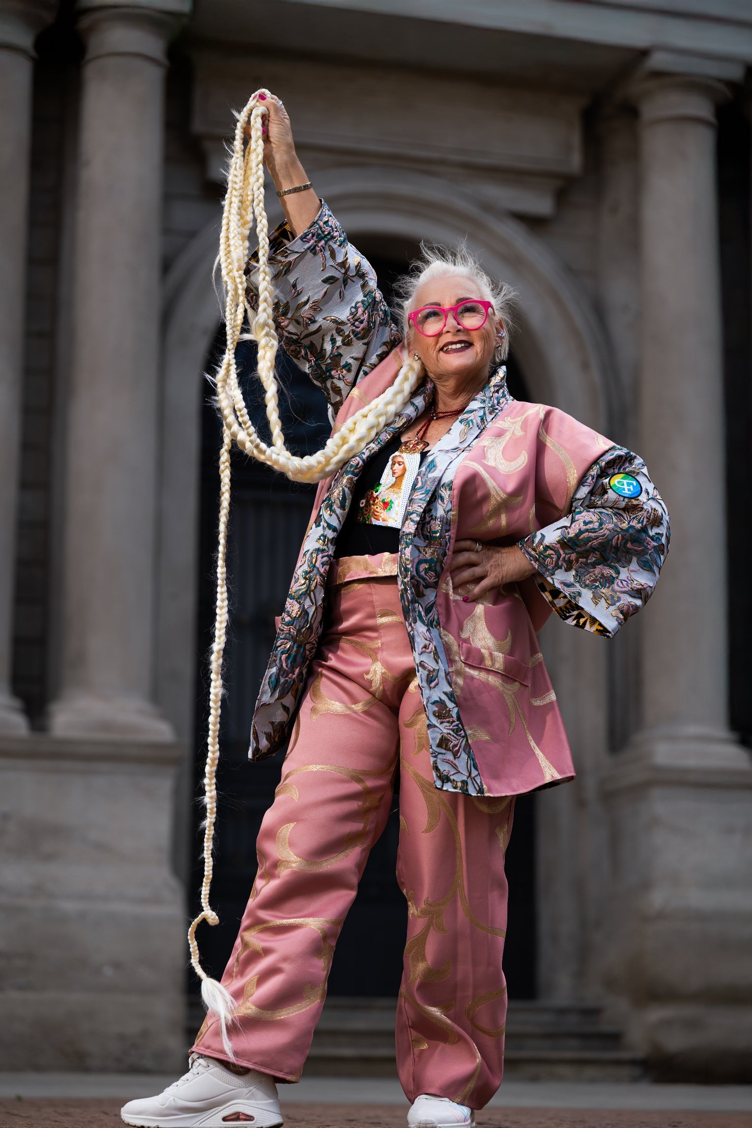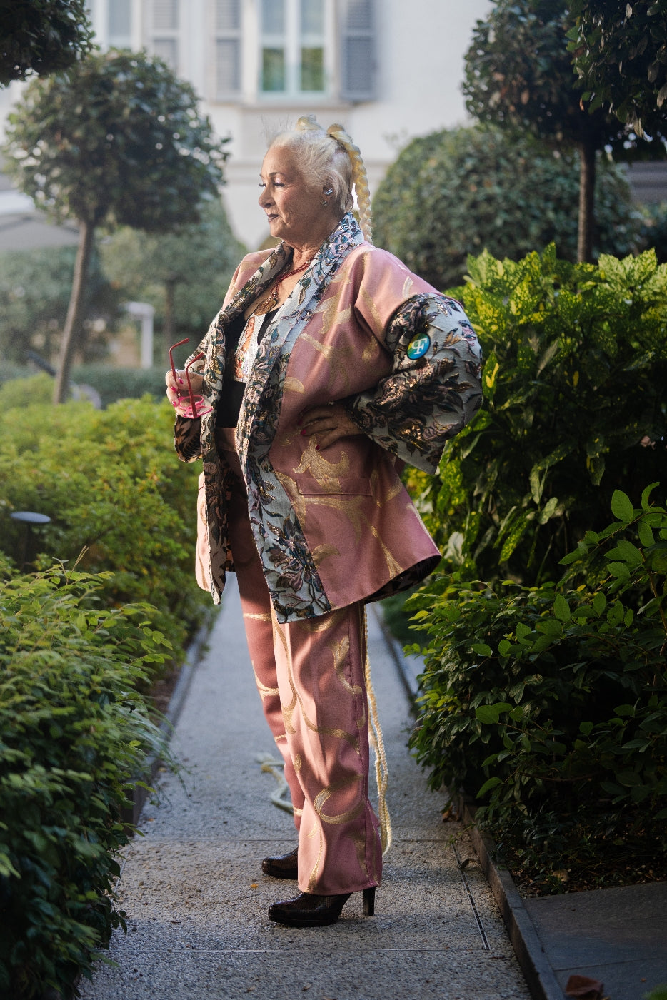 Pink & Gold Brocade Ensemble – Kimono Top and Pants | Milano Fashion Week 2025
