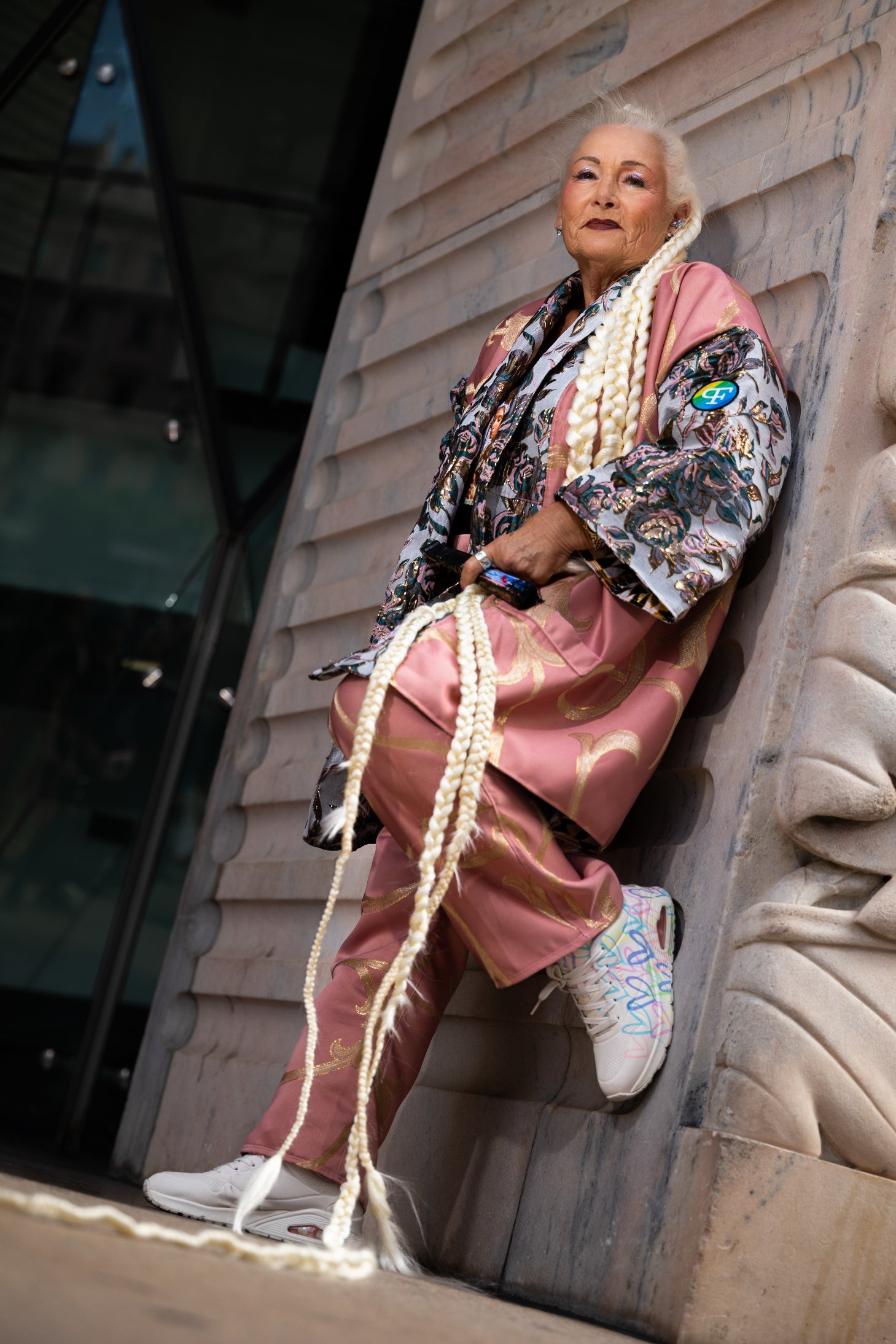 The outer fabric, sourced in Paris, adds a luxurious texture, while the inner lining of the kimono is made from authentic African cotton, creating a dialogue between continents through fabric and form. Designed oversized to fit sizes 40–44, the set includes practical pockets and a relaxed yet sculptural silhouette.