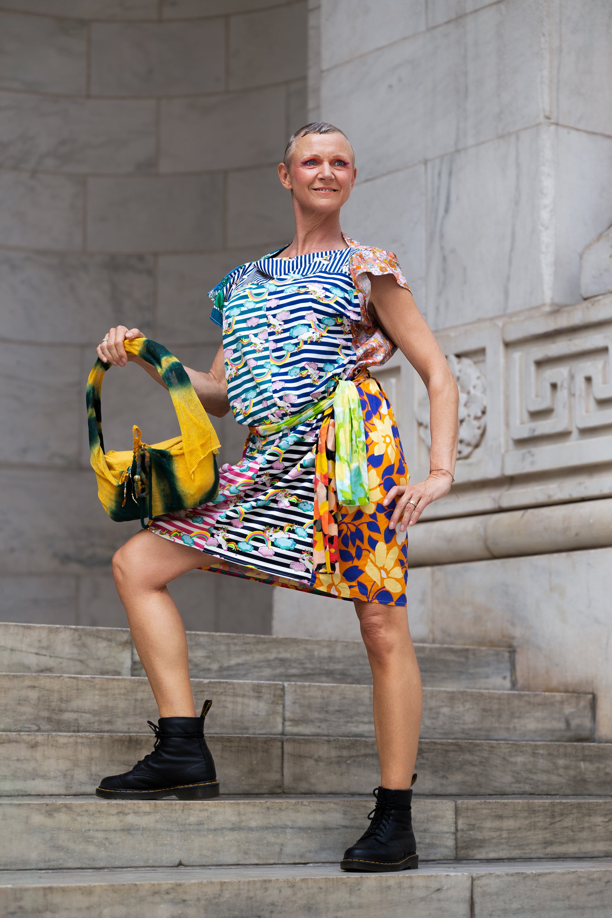Showcased at the New York Fashion Week 2025, this oversized art dress celebrates creativity, individuality, and sustainable storytelling — a true statement of freedom, fun, and fearless fashion.